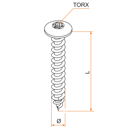 Jusqu'à 498 en stock (selon le modèle)Vis RL TORX X inox A2 pour penture
