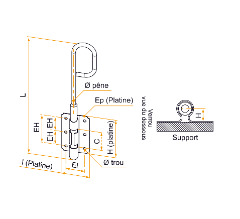 7 pièce(s) EN STOCKCrochet lyonnais sur platine acier noir Ø 10 mm